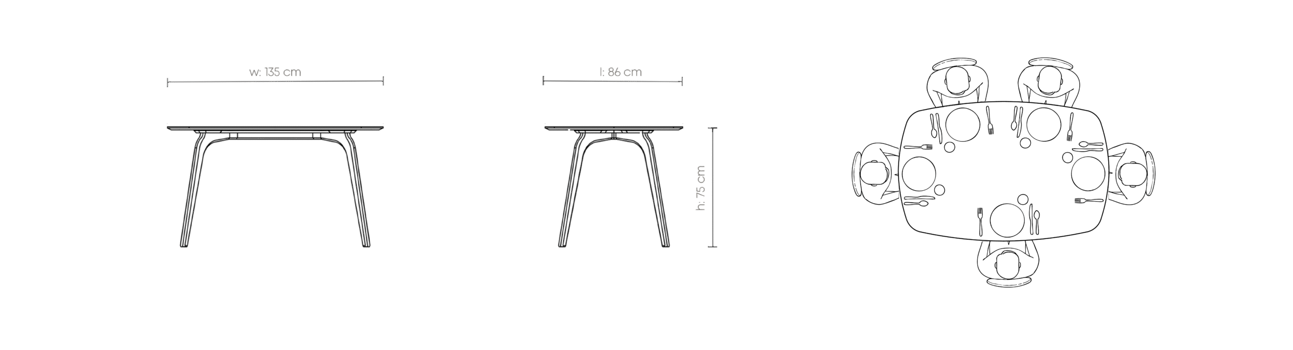 Podstawa i nogi wykonane są z lakierowanego lub olejowanego litego dębu. Wersja czarna dostępna jest w wersji z lakierowanego dębu. Wersja dębowa pokryta jest matowym, bezbarwnym lakierem. Wersja dębowa naturalna, jasna i ciemna wykonana jest z olejowanego litego dębu. Blaty stołów wykonane są z forniru dębowego lub orzechowego z trzema rodzajami wykończenia: olejowanym, lakierowanym i laminowanym.
