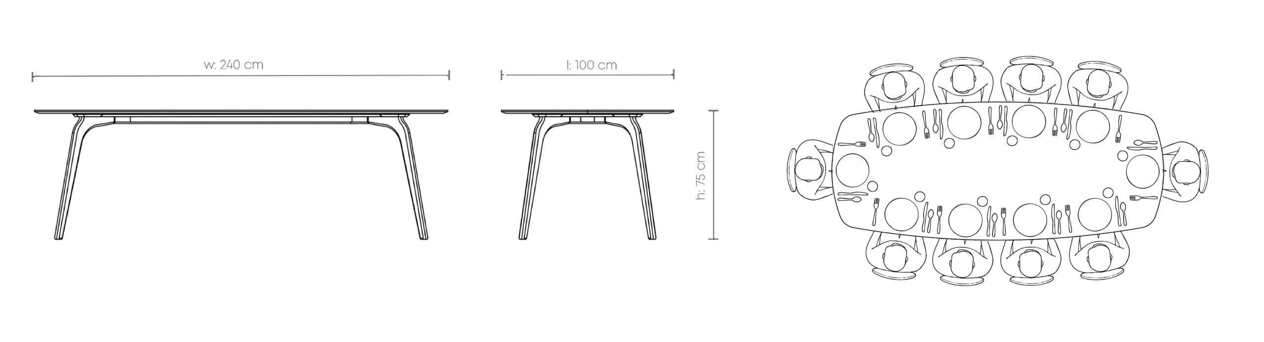 Stół stanowi centrum przestrzeni, łącząc ludzi i pozwalając na przeżywanie wspólnych chwil. Smukły i lekki, zajmuje tylko tyle miejsca, ile potrzeba. Jego forma urzeka łukami płynnie przechodzącymi w fazowane krawędzie oraz subtelnym odbiciem światła. Wykonany w Polsce z litego dębu i sklejki fornirowanej dębem, dostępny w personalizowanych kolorach, idealnie wpasuje się w różnorodne aranżacje wnętrz. Stół jest idealny dla 10 osób.